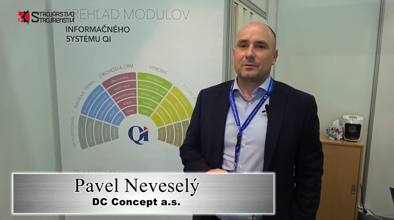 K tématům z oblasti ERP systémů máme co říct. Proto se specialisté z naší společnosti pravidelně vyjadřují v oborových periodikách. Aktuálně jsme byli osloveni redakcí časopisu Strojírenství: obchodní ředitel Pavel Neveselý ve videu shrnuje naše pocity z veletrhu MSV Nitra (kde video vzniklo) a podává informace o QI a QI GROUP (v té době ještě DC Concept).