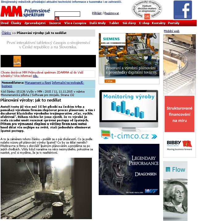 Podpoře výrobních procesů ve firmách se intenzivně věnujeme, i proto jsme pravidelně oslovováni periodiky, která se na tuto oblast zaměřují. Nedávno naši kolegové z dceřiné společnosti inSophy přispěli článkem do MM Průmyslového spektra.