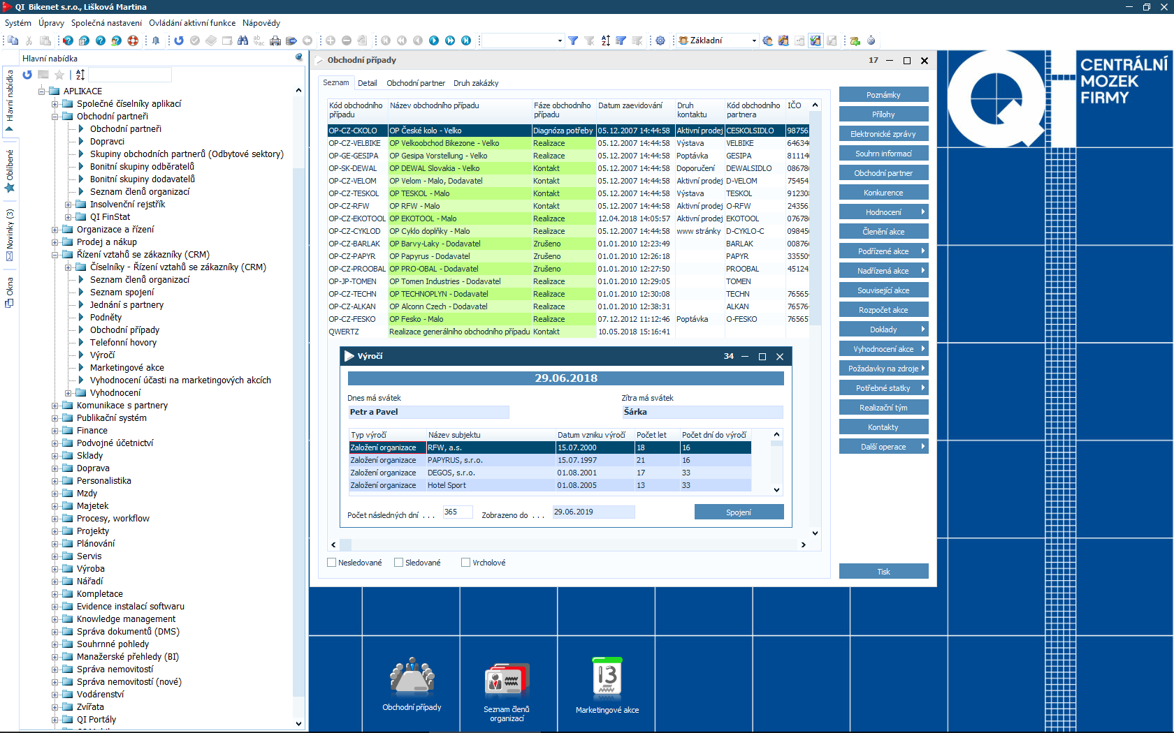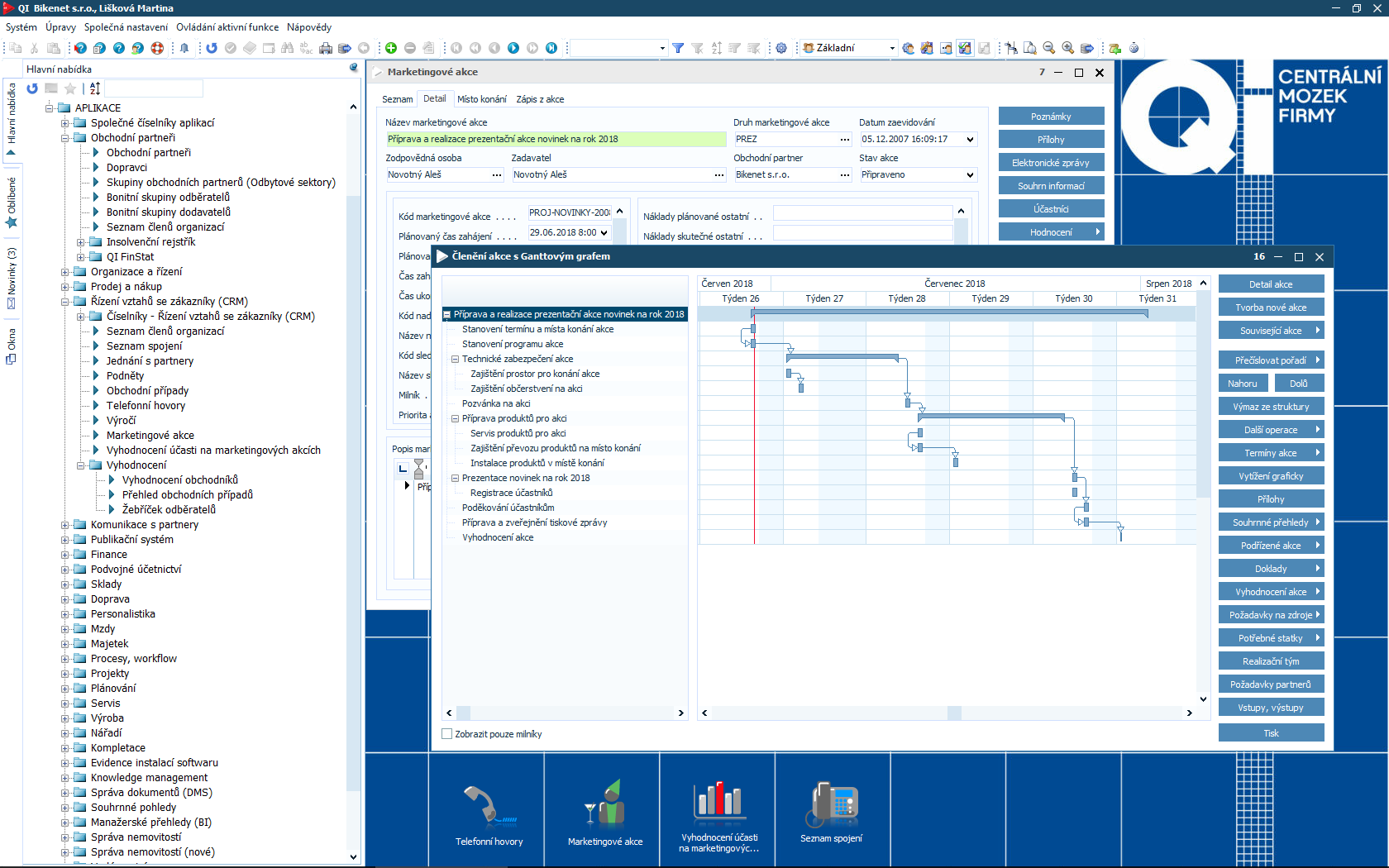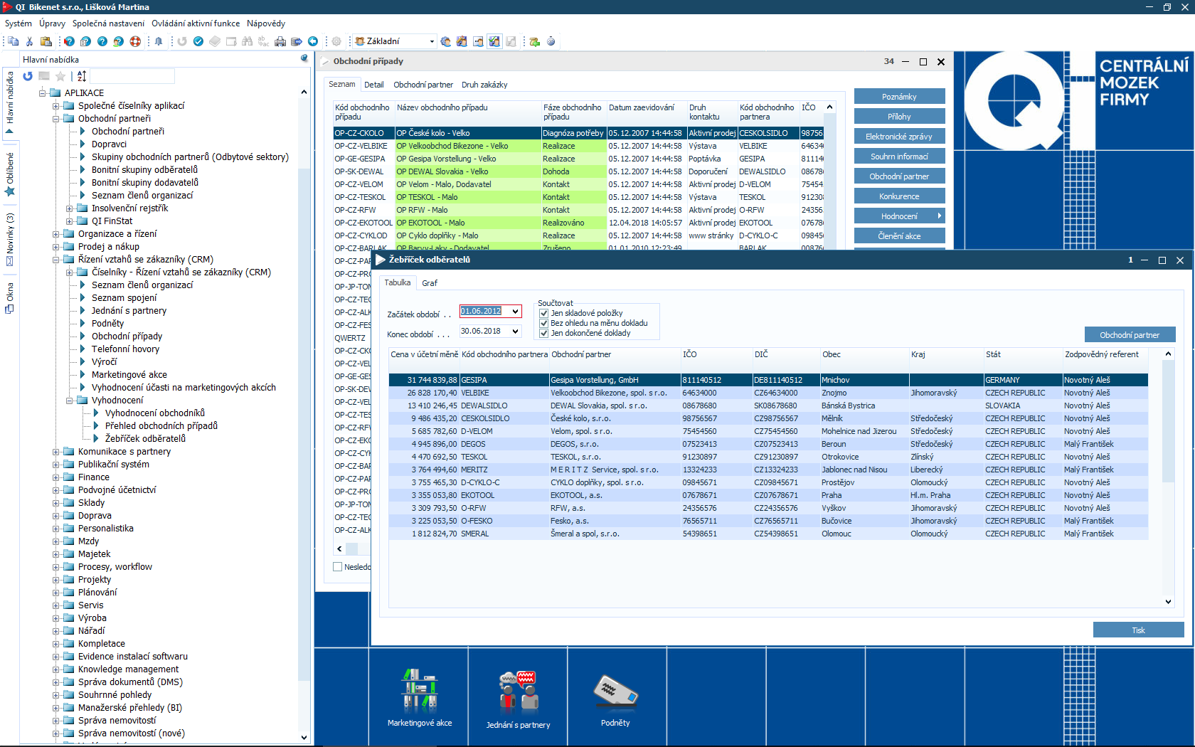 Čím více informací o partnerech i zákaznících máte, tím lépe pro Vaši firmu. Samotná data Vám ale bez kvalitního vyhodnocení neposkytnou požadované odpovědi. Proto je součástí informačního systému QI modul CRM a marketing, který Vám pomůže zpracovat údaje o zákaznících, identifikovat potřeby trhu a stanovit manažerská rozhodnutí. Podpoří také organizaci a vyhodnocení různých typů akcí.