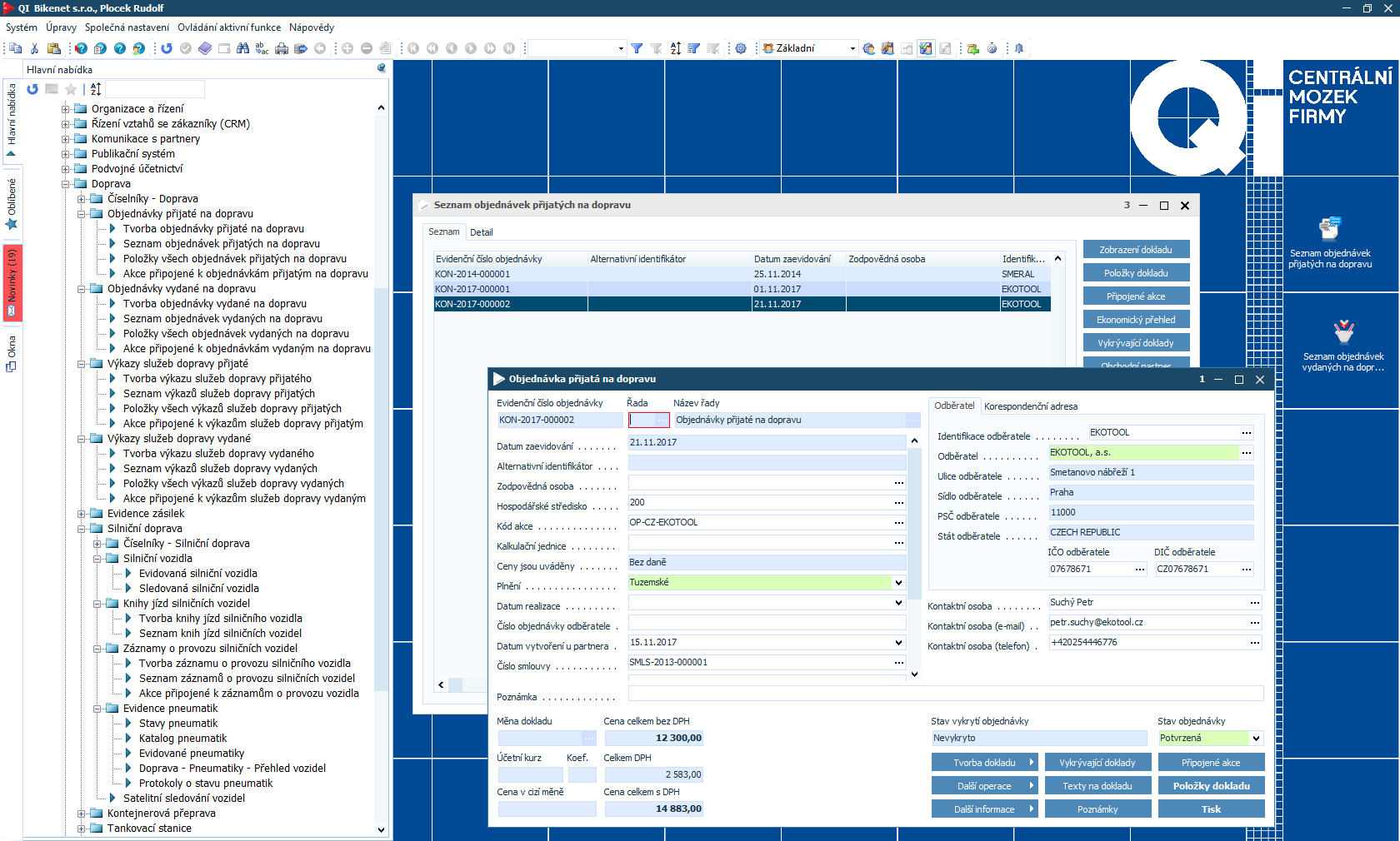 Zejména nárůst obchodů realizovaných přes internet přináší větší nároky na logistiku. Modul Doprava informačního systému QI nabízí pohodlné zpracování všech činností spjatých s tuzemským i zahraničním transportem, a to od přijetí objednávky až po odměňování řidičů podle hospodárnosti jejich jízdy. Mimo jiné pomůže s minimalizací nákladů, řízením všech zakázek a postará se o efektivní tvorbu i zpracování dokladů.