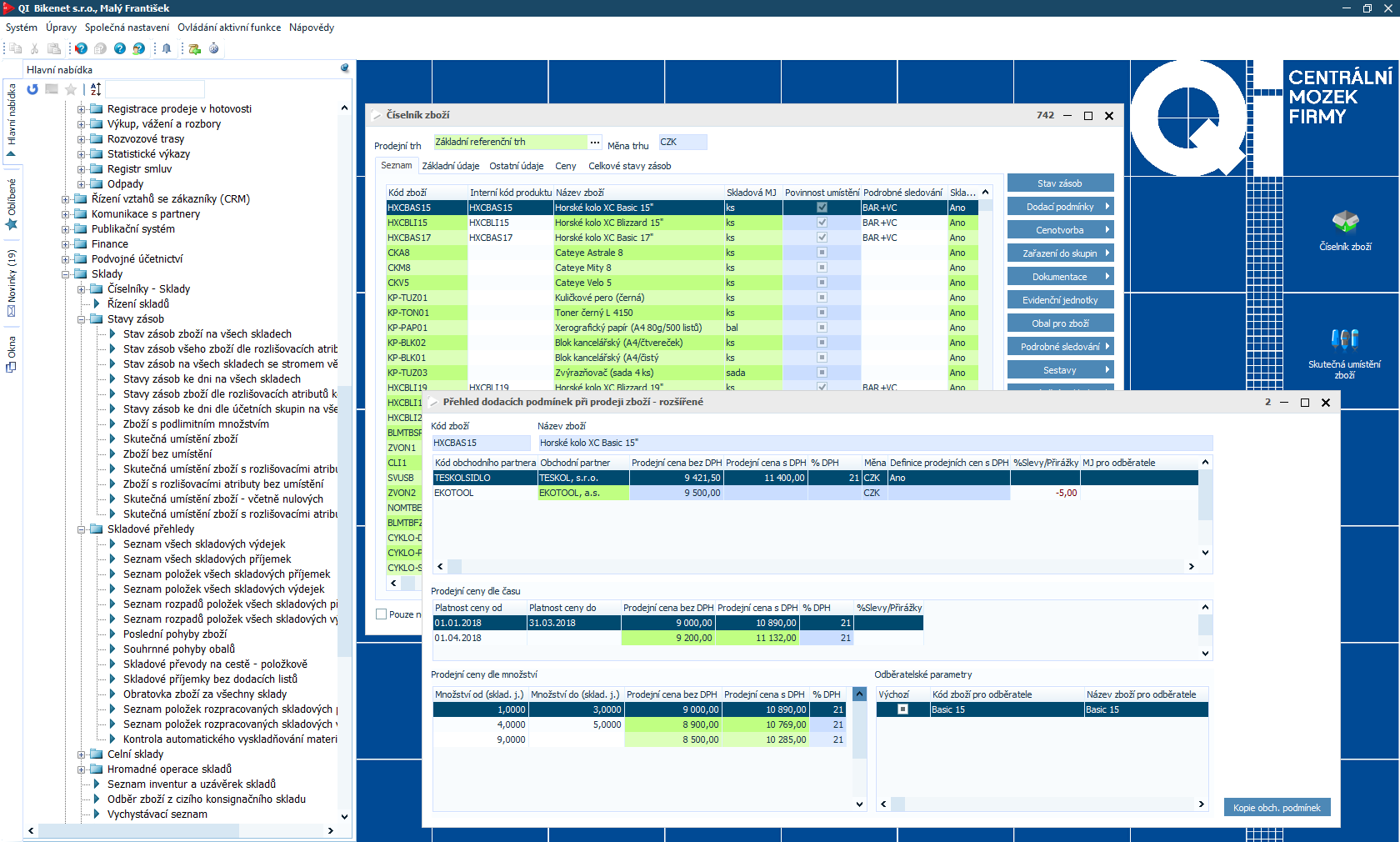 Zákonná povinnost vést skladové hospodářství se týká společností, které prodávají vlastní produkty nebo drží na skladech zboží od dodavatelů. V jeho rámci je nutné sledovat a evidovat stav i pohyb uskladněného zboží. S tím mohou pomoci specializované skladové systémy. Ještě výhodnější je ale využít komplexní nástroj, který obsáhne všechny firemní procesy, tedy nejen skladové hospodářství. Toto poskytuje QI – sklady zároveň propojí s výrobou, e-shopem nebo agendami spjatými s prodejem a nákupem. Ze zákonné podmínky tak získáte jednoznačnou výhodu.