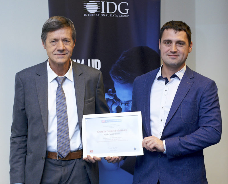 Jednatel společnosti Melzer Jiří Melzer a předseda představenstva QI GROUP Jiří Melzer ml. přebírají Cenu za finanční efektivitu