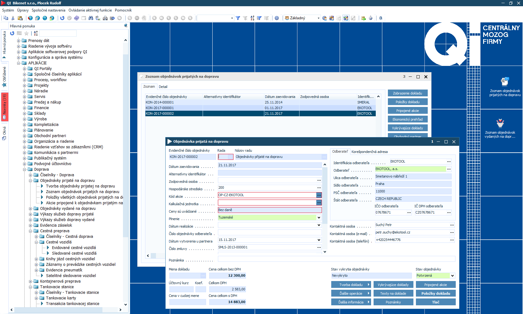 Predovšetkým nárast obchodov realizovaných cez internet prináša väčšie nároky na logistiku. Modul Doprava informačného systému QI ponúka pohodlné spracovanie všetkých činností spojených s tuzemským aj zahraničným transportom, a to od prijatia objednávky až po odmeňovanie vodičov podľa hospodárnosti ich jazdy. Okrem iného pomôže s minimalizáciou nákladov, riadením všetkých zákaziek a postará sa o efektívnu tvorbu aj spracovanie dokladov.