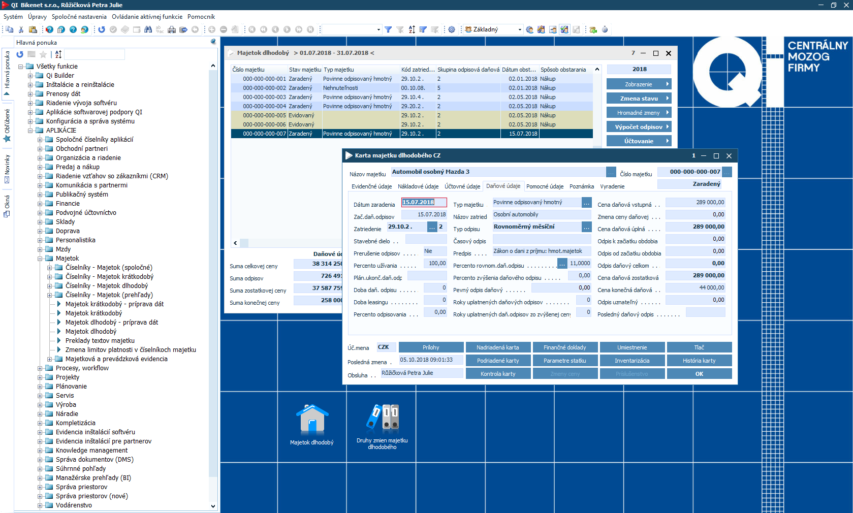 Pre zefektívnenie chodu spoločnosti sú potrebné spoľahlivé informácie o aktuálnom stave firemného majetku a zariadenia. Práve z týchto údajov vedenie firmy vyťaží optimálne rozhodnutie pre investície do výrobných alebo iných prostriedkov. Modul Majetok informačného systému QI je určený spoločnostiam, ktoré chcú maximálne automatizovať evidenciu majetku a pracovať so spoľahlivým a zákonom zodpovedajúcim nástrojom.
