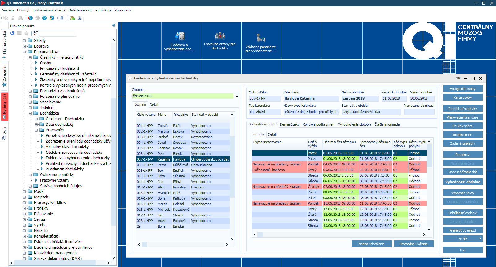 - Získate aktuálne informácie o príchodoch, odchodoch a neprítomnosti zamestnancov. QI všetky dáta spracováva v reálnom čase. Tiež zabezpečí presné podklady pre mzdy.