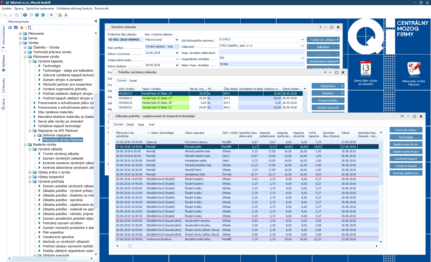 Požiadavky odberateľov na plnenie termínov, vysokú kvalitu výrobkov a pritom nízku cenu neustále rastú. Spoločnosť, ktorá chce v takom prostredí uspieť, musí vyrábať maximálne efektívne. Modul Plánovanie výroby a APS informačného systému QI dokáže pri plánovaní výroby zohľadniť kapacity strojov, technológií a tiež dostupnosť materiálov. Pre náročných ponúkame tzv. ABU (Advanced Business Unit), tá zahŕňa aj špecializované pokročilé plánovanie výroby APS (Advanced Planning and Scheduling), ktoré je integrované priamo v QI, a tiež metodickú pomoc.