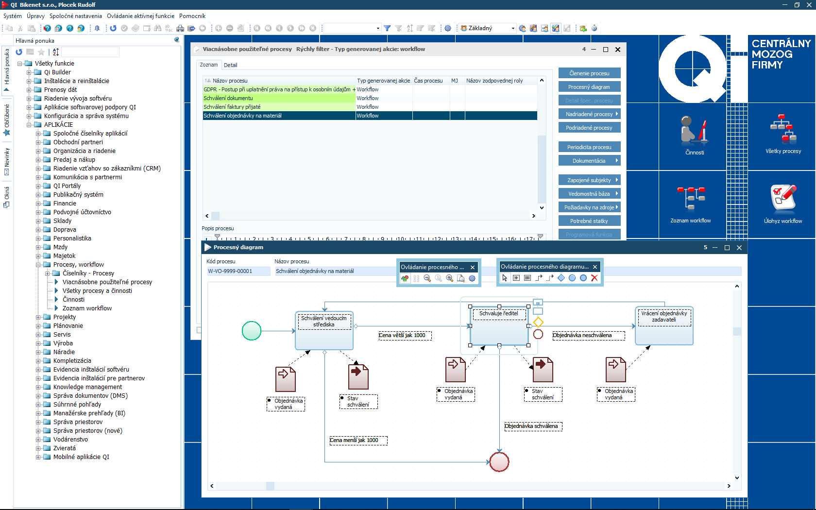 Pokiaľ sa rozhodnete procesy aktualizovať, zmeny sa prejavia vo všetkých projektoch, do ktorých sú dané procesy vložené. V QI si môžete vybrať, koľko procesov chcete zadať súbežne, tiež je možné vopred nastaviť podmienky pre ich zahájenie či opakovanie. Procesy môžete zobrazovať v podobe diagramu stromového tvaru.