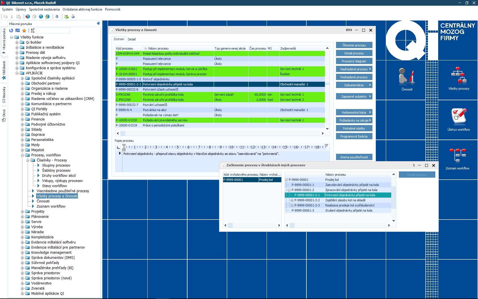 Aby Vaše produkty a služby obstáli pred konkurenciou, je potrebné optimálne nastaviť pracovné postupy. Preto buďte o krok vpred a pripravte si osvedčené firemné procesy vopred. Riadenie firmy dostane nový rozmer. S modulom Procesy a workflow, ktorý je súčasťou informačného systému QI, stačí šablóny všetkých úloh pripraviť raz, QI ich štruktúry uchová a zabezpečí, aby boli informácie odovzdané v správnom čase a poradí konkrétnom realizátorom. Chod firmy bude lepšie kontrolovateľný a spoľahlivosť firemných postupov sa zvýši na maximum.