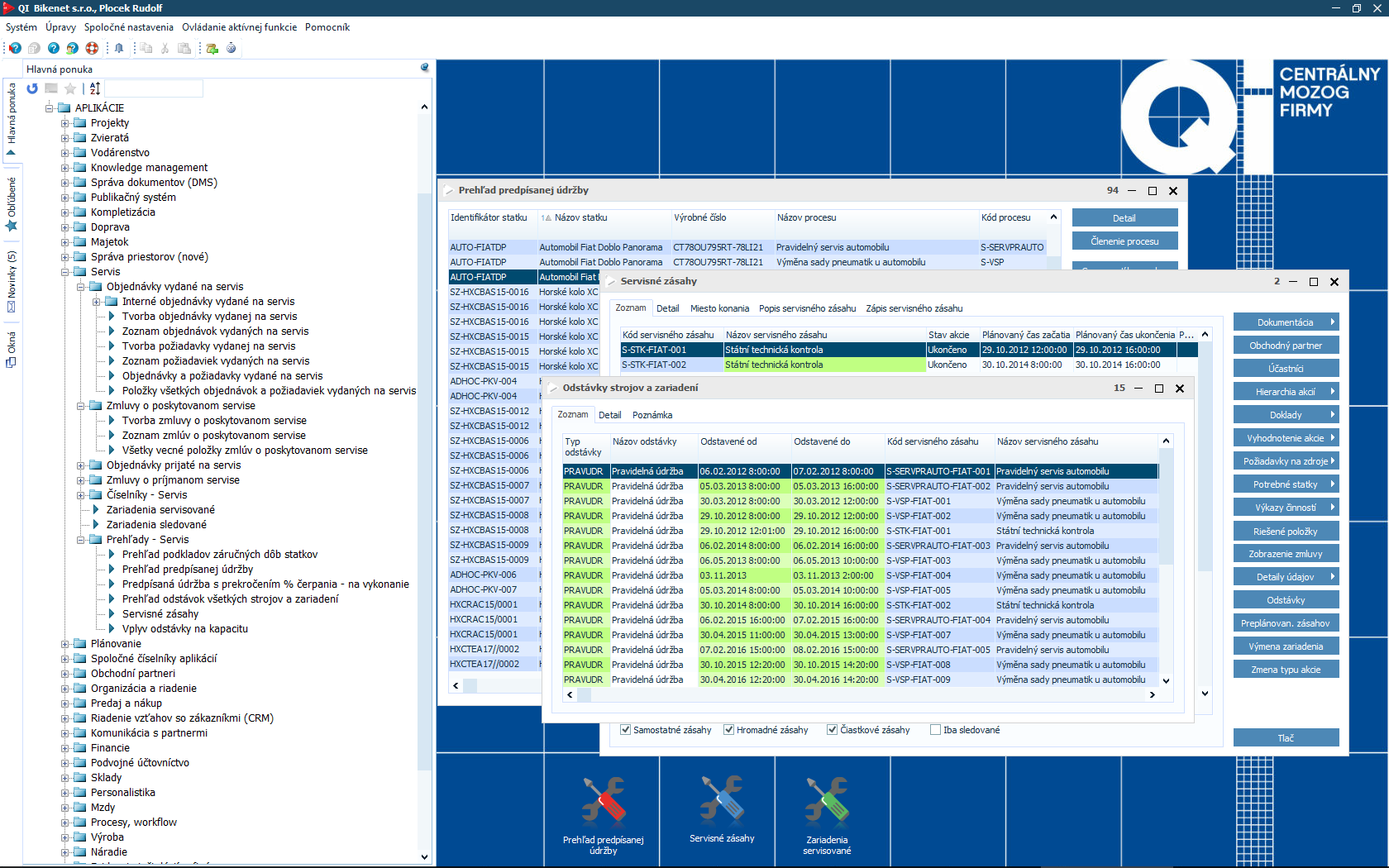 Náklady na udržiavanie a opravy firemného zariadenia môžu výrazne ovplyvniť rozpočet podniku. Neľahké to ale majú aj spoločnosti, ktoré servis poskytujú: pre ne je nutnosťou absolútny prehľad o zákazkách. Modul Servis a údržba informačného systému QI poslúži obom stranám – dokáže viesť podrobné evidencie o opravách a plánovať aj riadiť servisné zásahy.