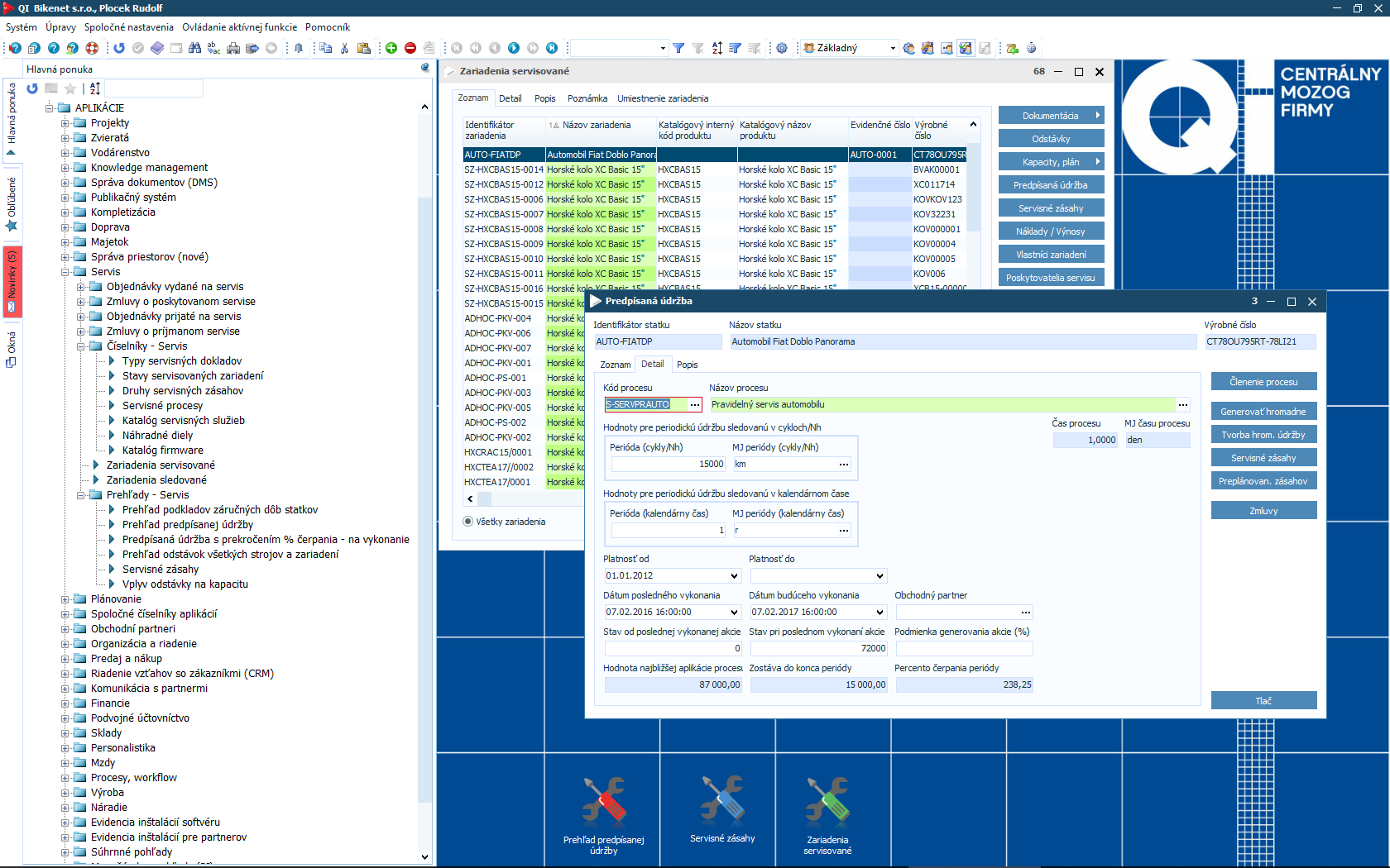 • Ako celé QI má aj Servis a údržba jednoduché ovládanie a je možné napojiť ho na ostatné moduly. Vďaka tomu môžete servisovať všetky zariadenia evidované v QI.