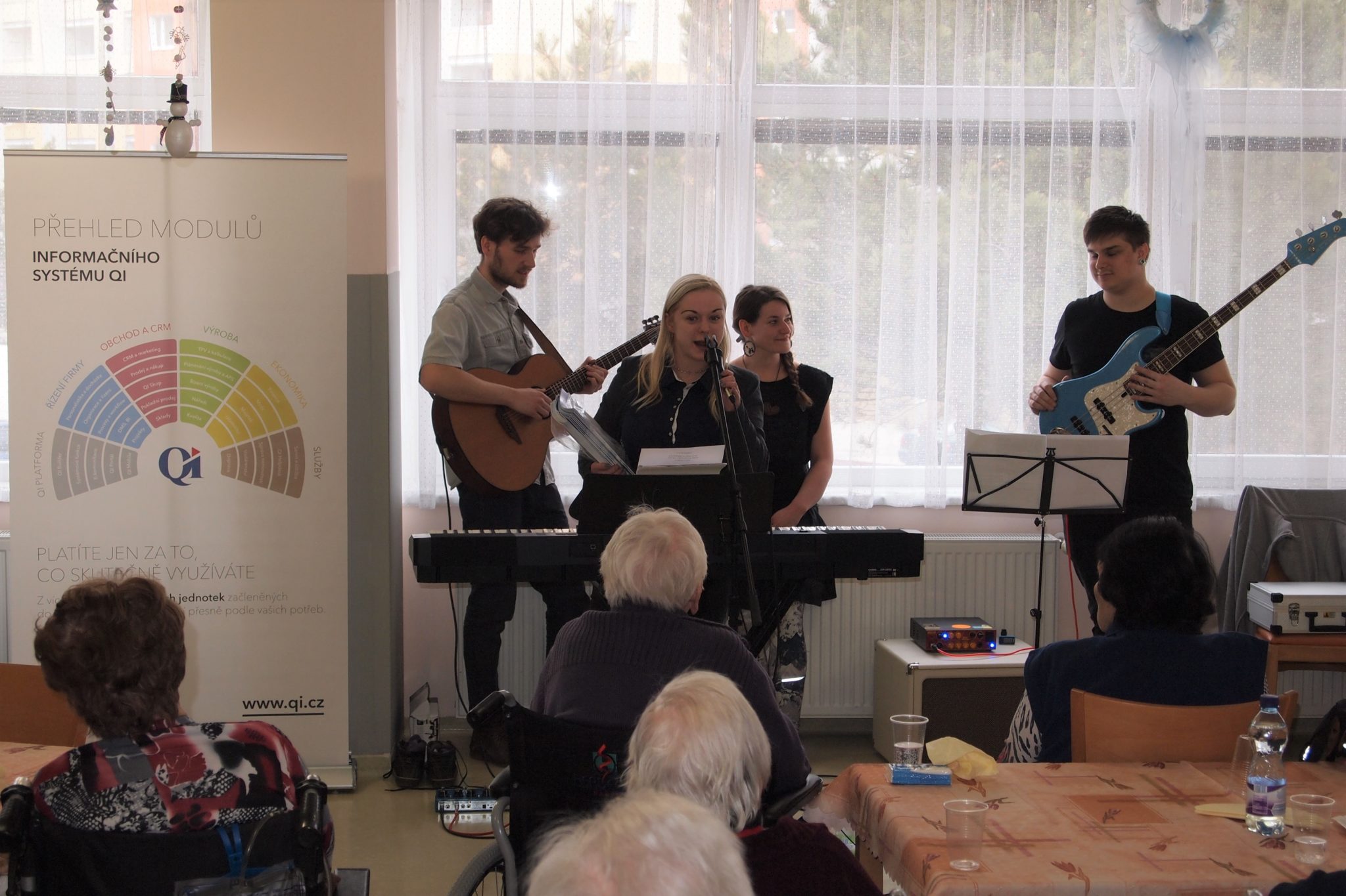 Dárky mohou mít různé podoby a formy. Domov pro seniory Foltýnova v brněnské Bystrci od nás dostal dárek v podobě odpoledního programu. Akce s názvem „Aby nám spolu bylo dobře“ se uskutečnila ve středu 7. 3. Plný sál seniorů se mohl u pohoštění zaposlouchat do živého folkově-jazzového vystoupení skupiny Člupy. „V naší zemi je spíše vzácné, že firma vnímá svoji společenskou odpovědnost vůči svému nejbližšímu okolí. Tým kolem QI ale patří mezi ty, kteří mohou v této oblasti inspirovat,” říká Renáta Chlebková z Dobrovolnického centra ADRA Brno, které akci organizačně zaštítilo a zároveň vysílá dobrovolníky nejen do Domova pro seniory Foltýnova, ale i do dalších zdravotně-sociálních zařízení v Brně. Přispíváme i na tyto aktivity.